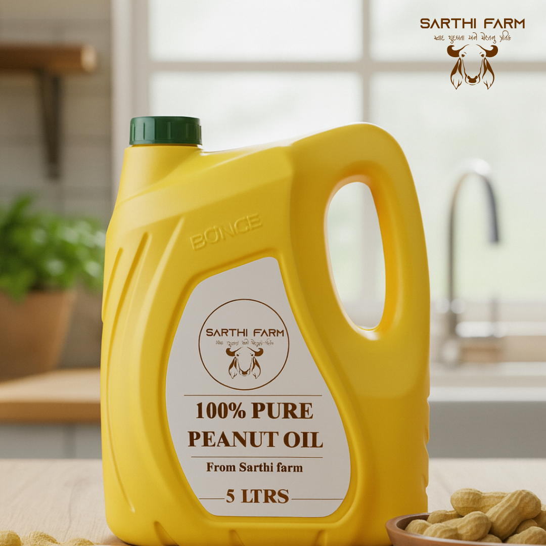 કોલ્ડ-પ્રેસ્ડ દેશી ઘાણીથી બનતું મગફળીનું તેલ શુદ્ધ અને સ્વાદિષ્ટ છે. કોઈ કેમિકલ વગર બનાવેલું હોવાથી આરોગ્ય માટે અત્યંત લાભકારી. રસોઈમાં તેનો ઉપયોગ ભોજનને સ્વાદિષ્ટ બનાવે છે અને હૃદય માટે પણ સારું છે. કુદરતી પૌષ્ટિકતાથી ભરપૂર આ તેલ અમારી સૌથી વિશ્વસનીય પ્રોડક્ટ્સમાંની એક છે.
